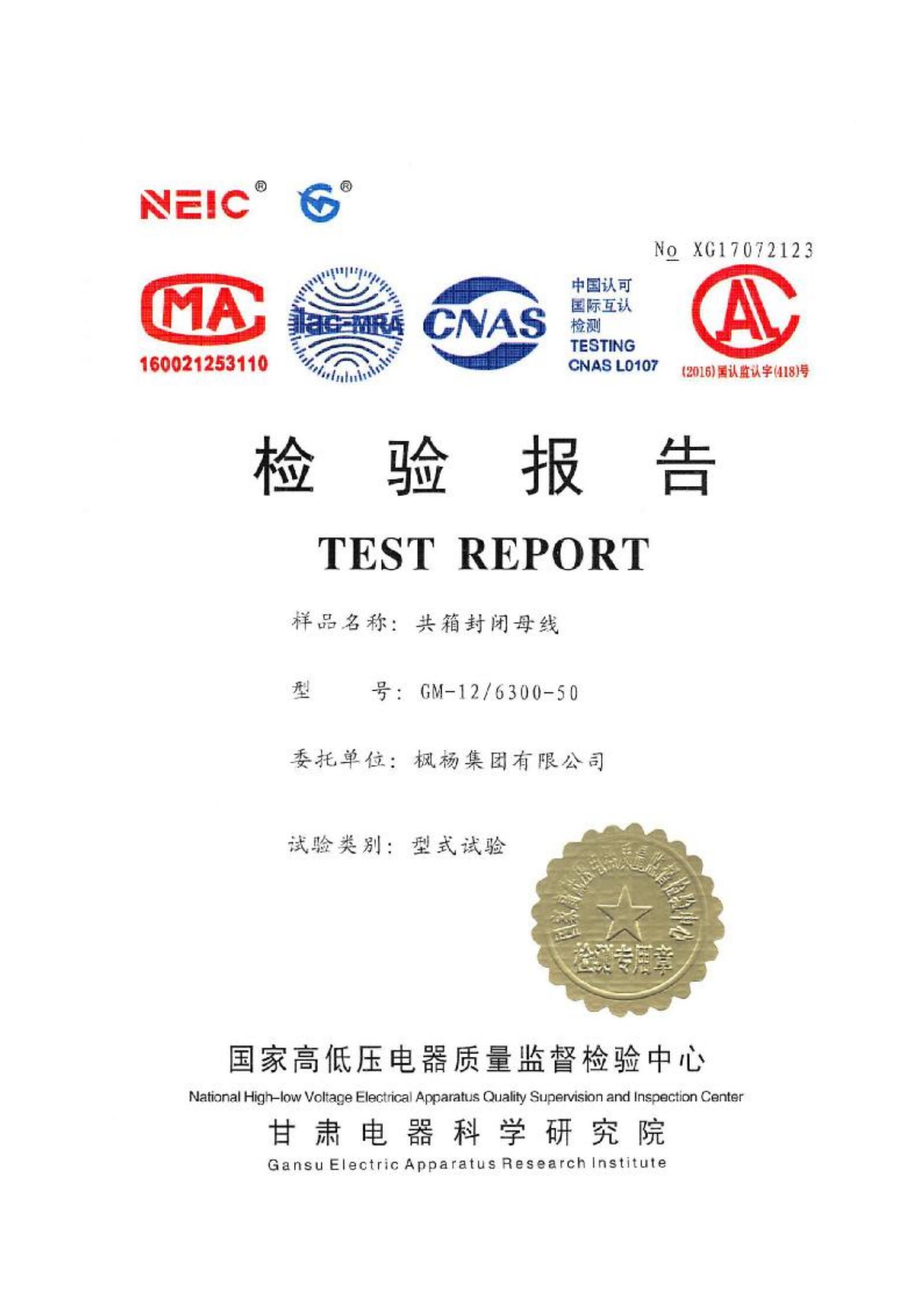 共箱封閉母線檢驗報告